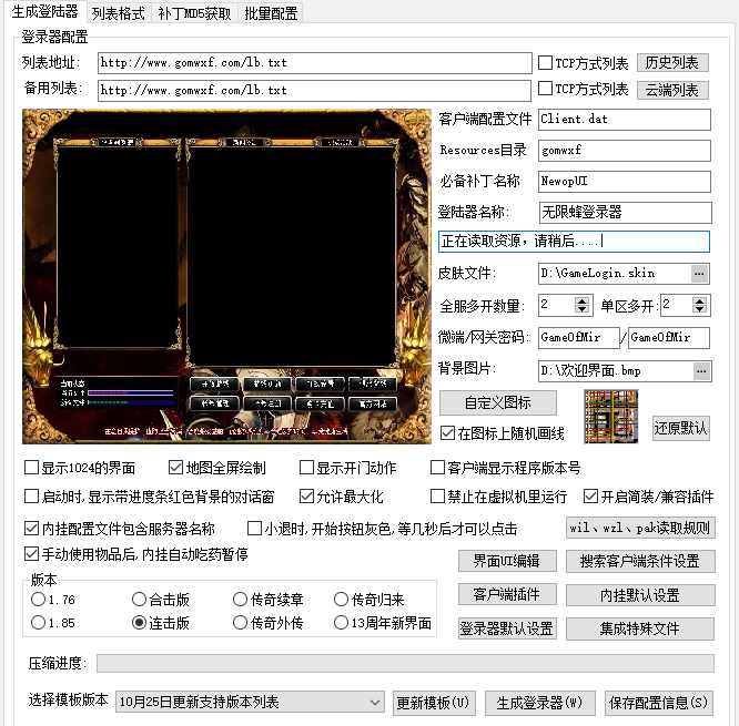 其他设置如无特殊要求基本可保持原版默认,如有新模板,请先更新模板,然后保存配置信息并生成登录器即完成登录器配置