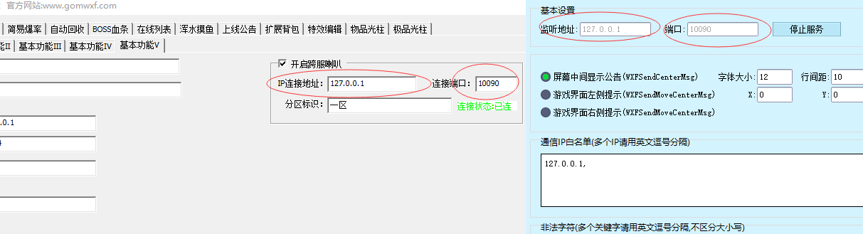 监听地址与IP连接地址保持一致 如果无限蜂跨区喇叭放在开区服务器 默认填写127.0.0.1